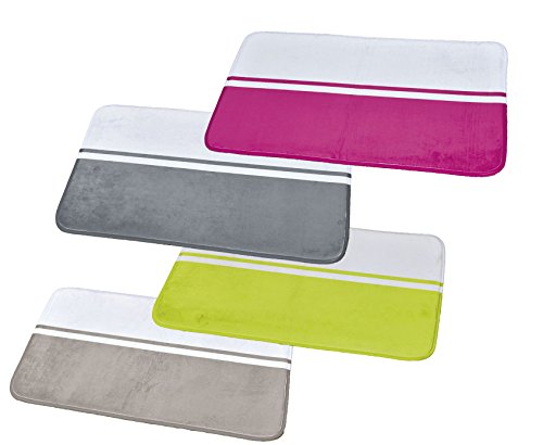 -. Feature : P.R.Inted microfiber bath rug Two-colored 100% polyester / Complete your decoration with other products of the same collection Two-colored / Machine wash cold and no dryer. Indoor use only / 17" W X 29.5"L, rectangular shape / Imported, two-colored : white/taupe, white/anise green,white/gray,white/fuchsia