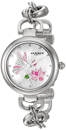 -. Title : Akribos XXIV Women's Swarovski Crystal Landscaped White Mother-of-Pearl Dial with Silver-Tone Chain Link Bracelet Watch AK934SS