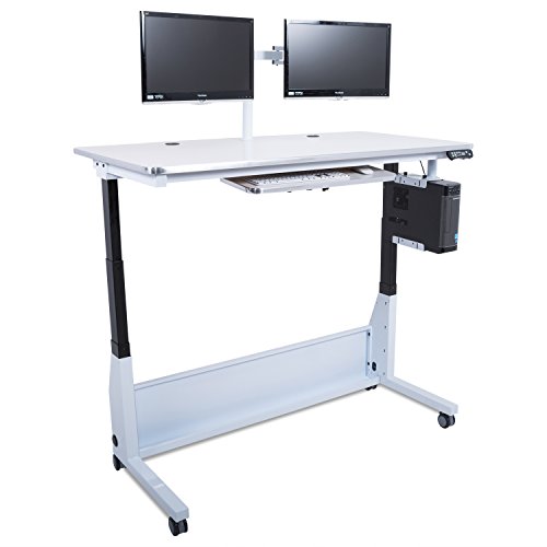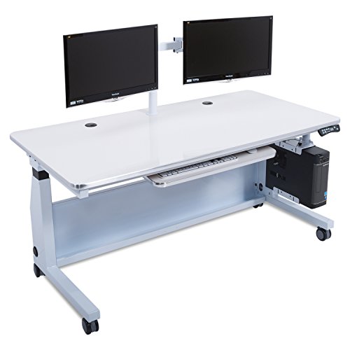 - Feature : With the touch of a button, the table's height adjusts from 24" to 50" to best suit your needs / Made in the United States with Nevarmar powder coating / Scratch-resistant whiteboard surface for easy cleaning and note taking / The table's 28" x 10" ergonomic keyboard tray, with 15 degrees of tilt and 6" of height adjustment / Overall Dimensions: 72" x 30" supporting up to 600 lbs vertically with a dual LCD monitor arm and CPU holder included