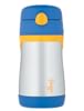 The Vacuum Insulated Straw Bottle is a Phase 3 product for children 18 months and older. It features THERMOS vacuum insulation technology for maximum temperature retention. Made from durable, BPA-free double wall stainless steel, this bottle features an easy to open hygienic push button lid with pop up straw. The contoured body is easy to grip, so your little ones can stay hydrated while at home or on the go. With a 10-ounce capacity, it keeps liquids cold for up to 10 hours. Dishwasher safe.