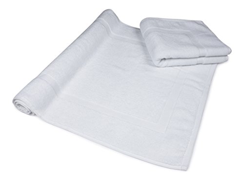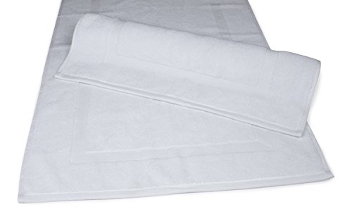 Luxury Hotel and Spa 100% Turkish Cotton Banded Panel Bath Mat Set 900gsm! 20"x34" (White, 2 Pack)
