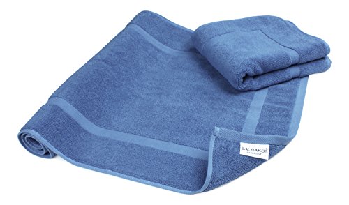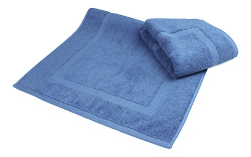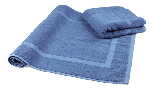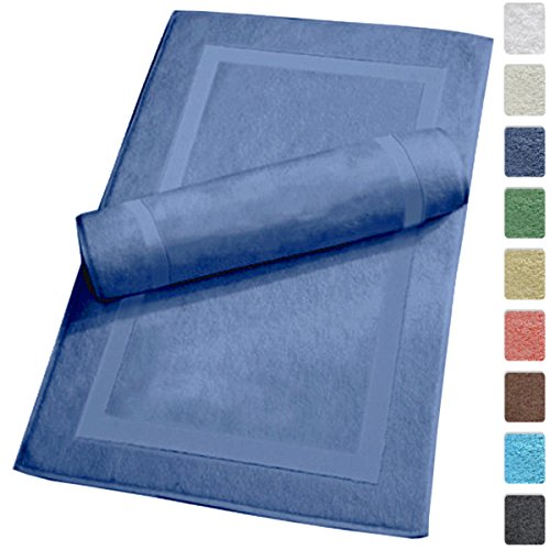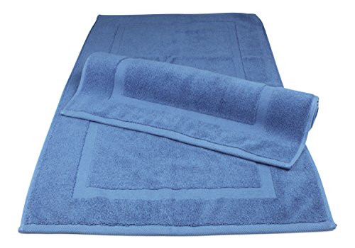 Luxury Hotel and Spa 100% Turkish Cotton Banded Panel Bath Mat Set 900gsm! 20"x34" (Blue, 2 Pack)