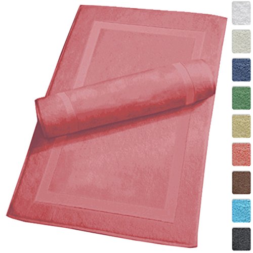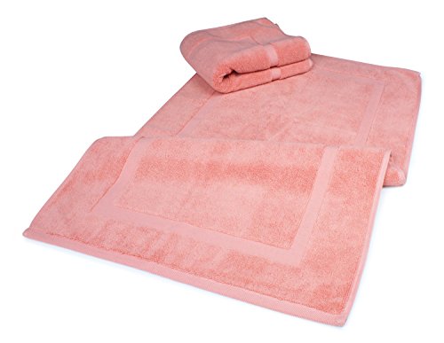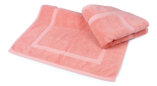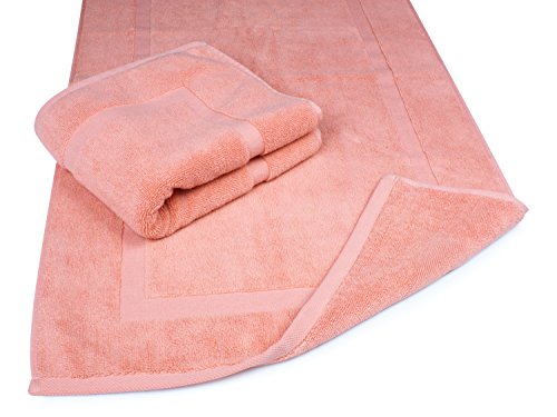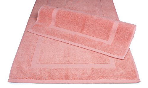 Luxury Hotel and Spa 100% Turkish Cotton Banded Panel Bath Mat Set 900gsm! 20"x34" (Salmon / Pink, 2 Pack)