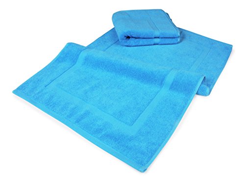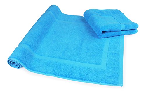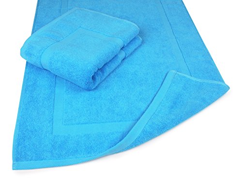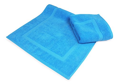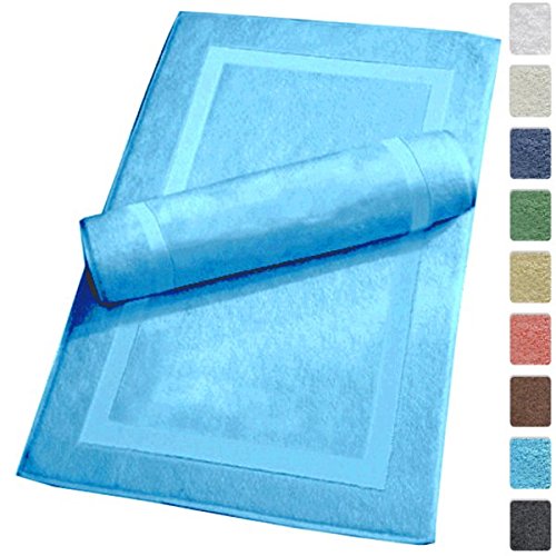 Luxury Hotel and Spa 100% Turkish Cotton Banded Panel Bath Mat Set 900gsm! 20"x34" (Aqua, 2 Pack)