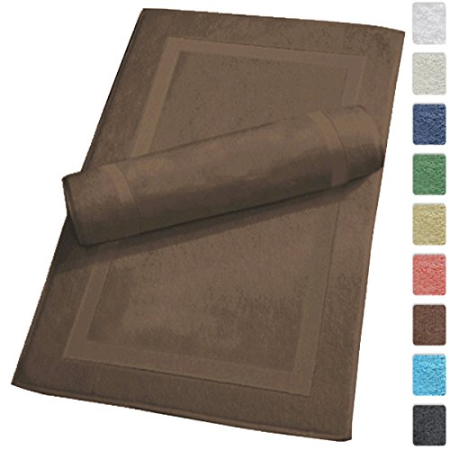 Luxury Hotel and Spa 100% Turkish Cotton Banded Panel Bath Mat Set 900gsm! 20"x34" (Chocolate, 2 Pack)