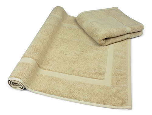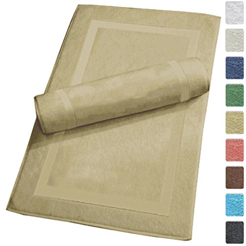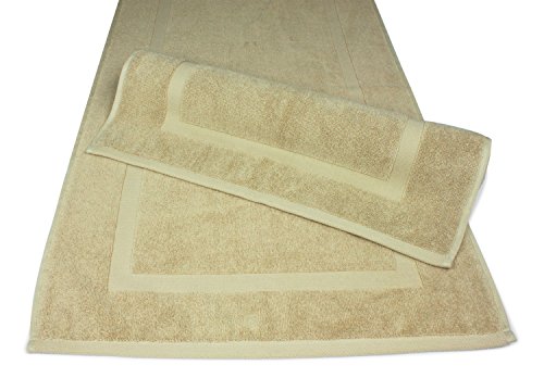 Luxury Hotel and Spa 100% Turkish Cotton Banded Panel Bath Mat Set 900gsm! 20"x34" (Ivory, 2 Pack)