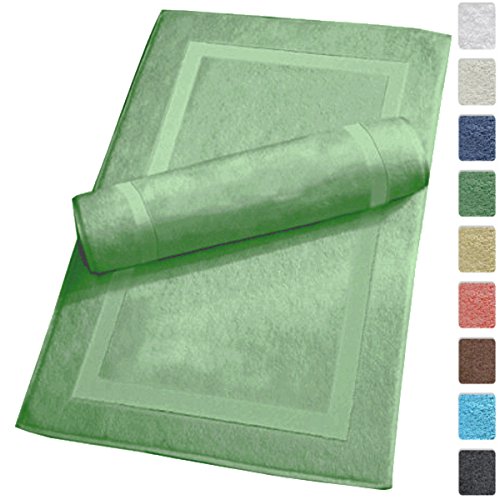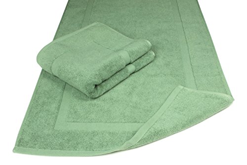 Luxury Hotel and Spa 100% Turkish Cotton Banded Panel Bath Mat Set 900gsm! 20"x34" (Green, 2 Pack)