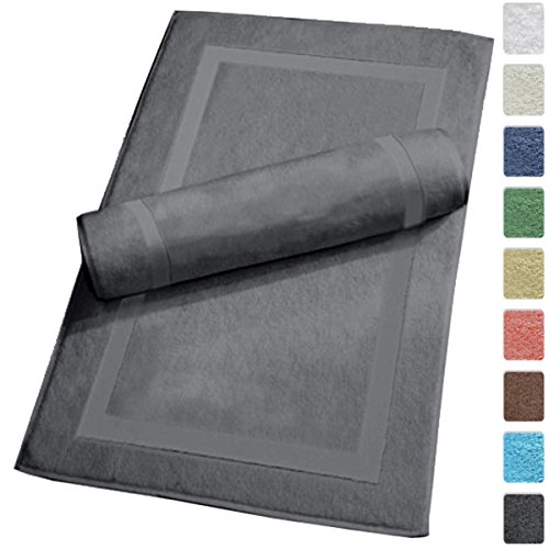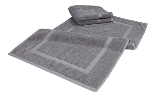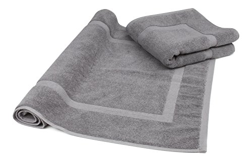 Luxury Hotel and Spa 100% Turkish Cotton Banded Panel Bath Mat Set 900gsm! 20"x34" (Gray, 2 Pack)