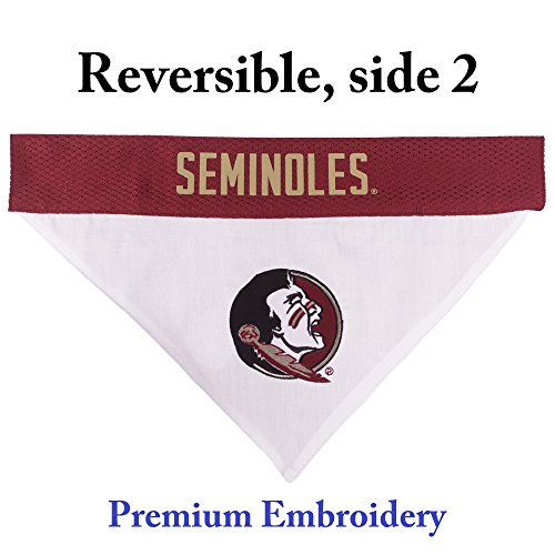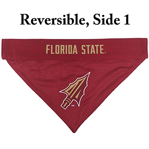 Studio : Pets First Publisher : Pets First Binding : Misc. Product Description Your pet will surely be able to show off his/her team spirit with this unique dual sided COLLEGE DOG BANDANA! It features a screen printed team logo and name on 1 side a embroidered team logo on the other side! Officially licensed and ready for game day! Comfortable 100% poly-cotton keeps it wrinkle free and easy to clean. Great for parties, BBQs, tailgating and even Halloween as a pet costume. SIZING USE: Two available sizes will fit most dogs, including small dogs, medium dogs and large dogs. Please measure your dog before ordering to ensure you get the right fit and avoid any need for a return or exchange. Best fit if used with our matching COLLEGE DOG COLLAR! TEAMS - Available teams include: Alabama Crimson, Arkansas Razorbacks, Arizona State University Sun Devils, Auburn Tigers, Clemson Tigers, Connecticut Huskies, Duke Blue Devils, Florida Gators, Florida State Seminoles, Georgia Bulldogs, Iowa Hawkeyes, Illinois Fighting Illini, Indiana Hoosiers, Iowa State Cyclones, Kansas Jayhawks, Kentucky Wildcats, LSU Tigers, Michigan Wolverines, Miami Hurricanes, Missouri Tigers, Michigan State Spartans, Mississippi State Bulldogs, NC State Wolfpack, Nebraska Cornhuskers, Ohio State Buckeyes, Oklahoma Sooners, Oklahoma State Cowboys, Oregon Ducks, Penn State Nittany Lions, Pittsburgh Panthers, Purdue Boilermakers, South Carolina Gamecocks, Syracuse Orange, Texas AM Aggies, Tennessee Volunteers, Texas Tech Red Raiders, Texas Longhorns, Louisville Cardinals, Mississippi Ole Miss Rebels, USC Trojans, Utah Utes, Virginia Cavaliers, Virginia Tech Hokies and Wisconsin Badgers. Choose your team and click ADD TO CART NOW!. 0