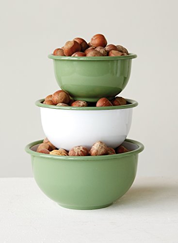 Creative Co-Op Enameled Bowl Set, , Green