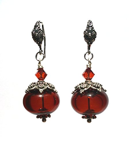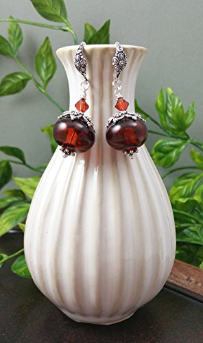 -. Title : 1 pair of Root Beer Brown Dark Amber Hollow Bead Earrings Transparent Glass Bubble Lampwork