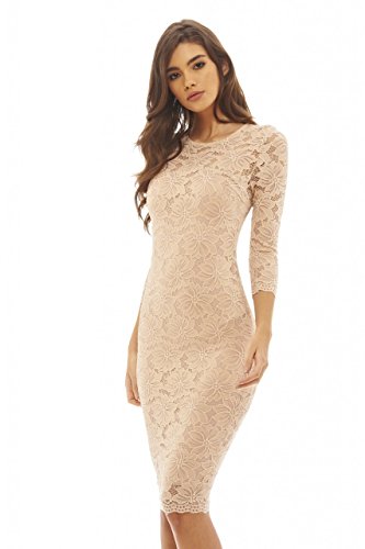 This nude all over crochet dress with 3/4 sleeves is the perfect piece to create that elegant look! The bodycon shape will hug your curves and midi length makes this high necked style sexy yet sophisticated. Suitable for any occasion simply pair with some classic heels and a clutch.Feature