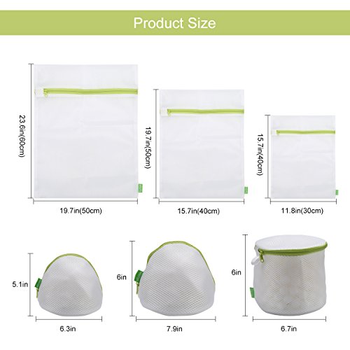 - Six Sizes Included: ✔1pc(XL): 23.6"*19.7"(Suitable for coat) ✔1pc(L) : 19.7"*15.7"(Suitable for pants or sweaters) ✔1pc(M): 15.7"*11.8"(Suitable for underwear, socks, summer t-shirt) ✔6"*8.2"(Bra laundry bag 1pc) ✔5.1"*8.2"(Bra laundry bag 1pc) ✔6.3"*6"(Bra laundry bag 1pc)