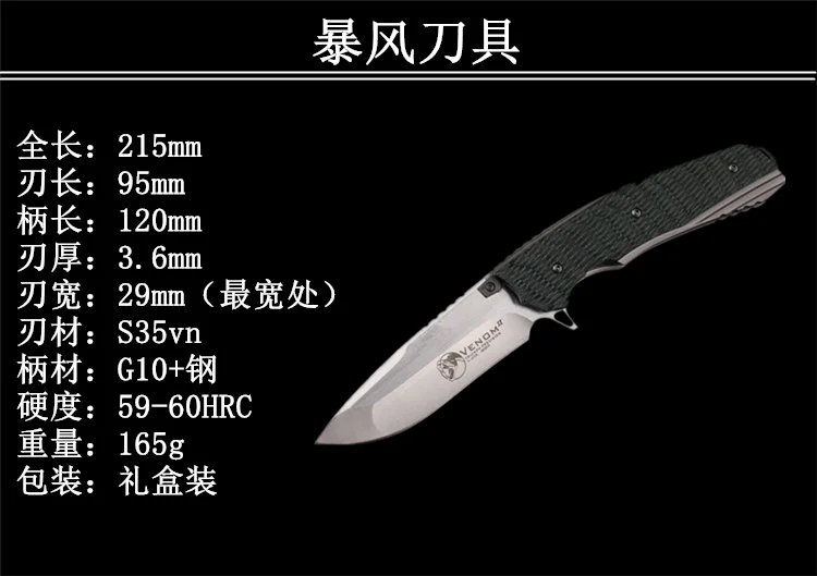 고품질 베어링 G10 티타늄 핸들 S35VN 블레이드 나이프 사냥 캠핑 야외 자기 방어 전술 육군 생존 EDC 칼