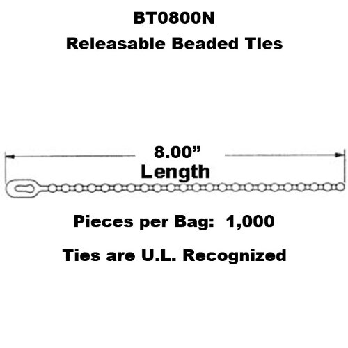 - Title : Tach-It BT0800N 8" Releasable Beaded Tie (Pack of 1000)