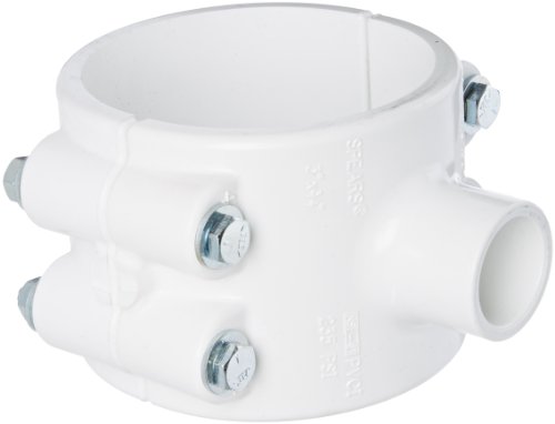Spears 466 Series PVC Clamp-On Saddle with Buna O-Ring, Zink Bolt, Schedule 40, White, 6" IPS OD x 1" Socket