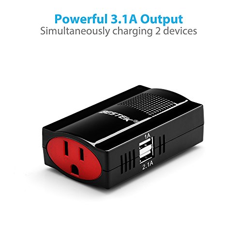 BESTEK 150W Power Inverter DC 12V to 110V AC Car Adapter with 3.1A Dual USB Charging Ports