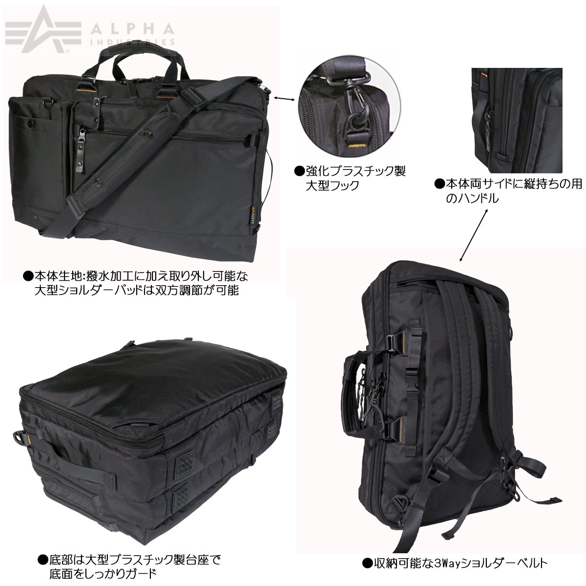 ◆ Shoulder · Shoulder · 3Way function on the back ◆ Carry on function (using the back side carry belt) ◆ Pet bottle storable pocket ◆ Carrying the suit etc. with the garment function · Storing the A3 file by removing the garment cover ◆ Store on business