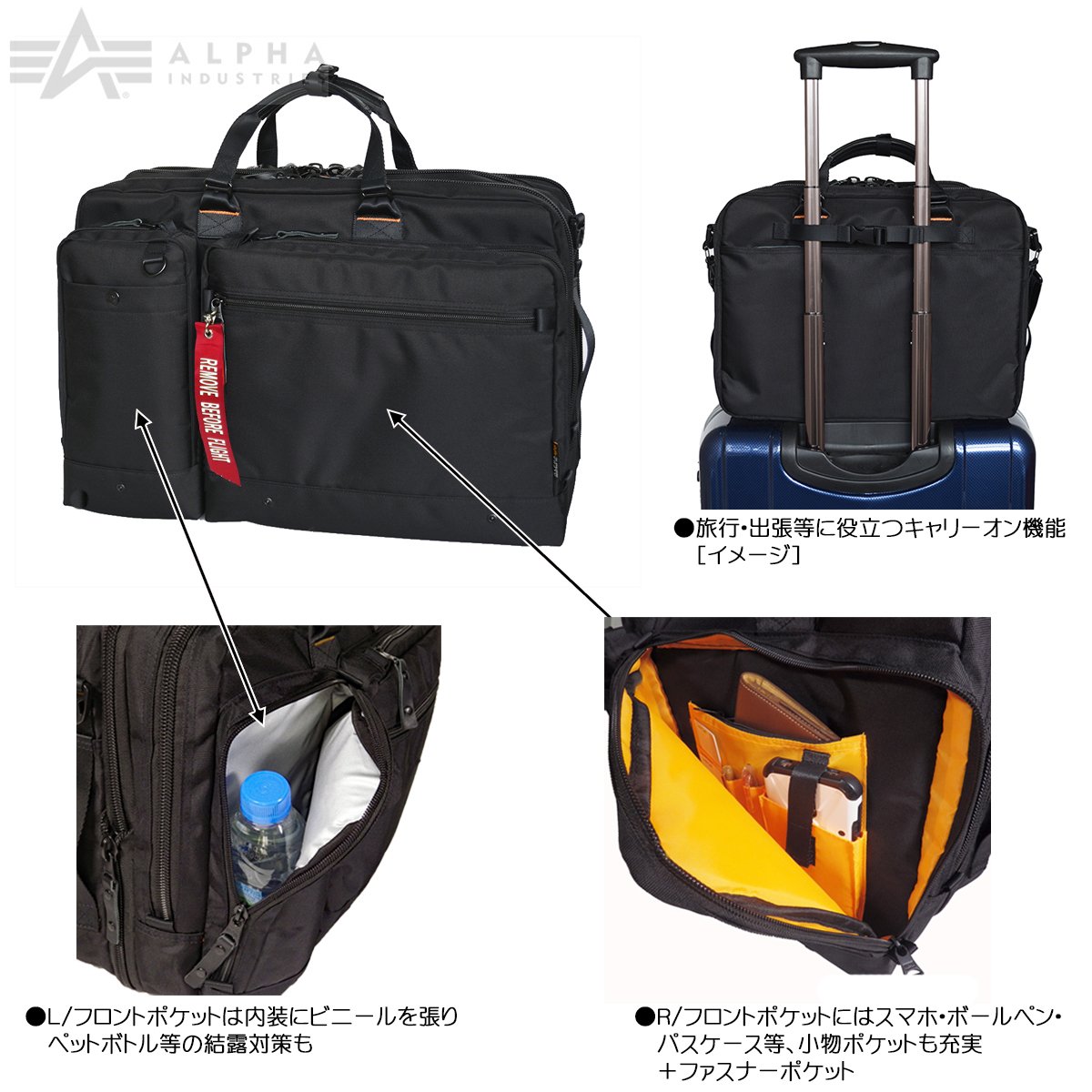 【POINT !!】 "REMOVE BEFORE FLIGHT" label is attached to the item of Bag Express Edition.