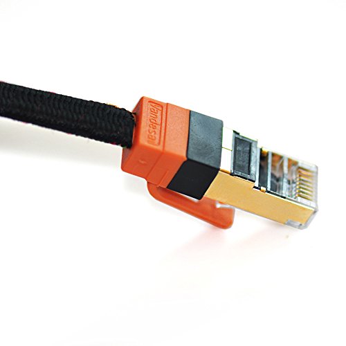 ★SHIELDED TWISTED PAIR (SSTP) OF COPPER WIRES WITH TWO RJ45 CONNECTORS ON EACH END - Compared to the Cat 6 network ethernet cable, the additional shielding and improved quality in twisting of the wires provides better protection from crosstalk, noise, and interference that can degrade the signal quality