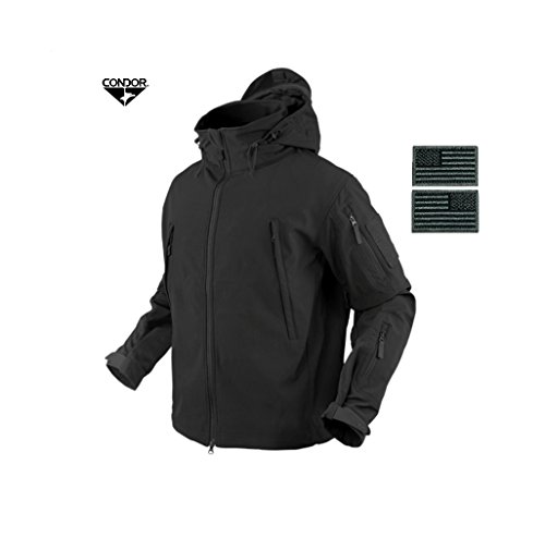 -. Title : Condor 602 Summit Soft Shell Jacket, Black + 2 FREE Grey/Black Velcro Flag Patches