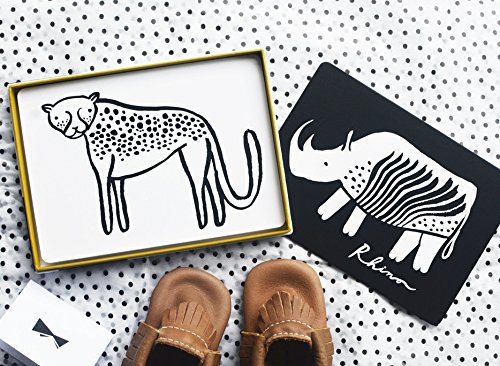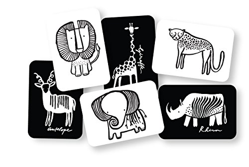 Wee Gallery art cards are created from bold, whimsical, hand-painted originals that cater to a baby's visual strengths. The black and white flash cards images and their repeating patterns captivate little ones. Place them in the crib to transform it into a wee gallery or use them as flash cards for older children. A boxed set includes an antelope, cheetah, elephant, giraffe, lion and rhino. Printed on sturdy board, these art cards will stand up to baby's explorations. Each 5x7" flash card is beautifully finished with matte lamination and child-friendly rounded corners.Feature