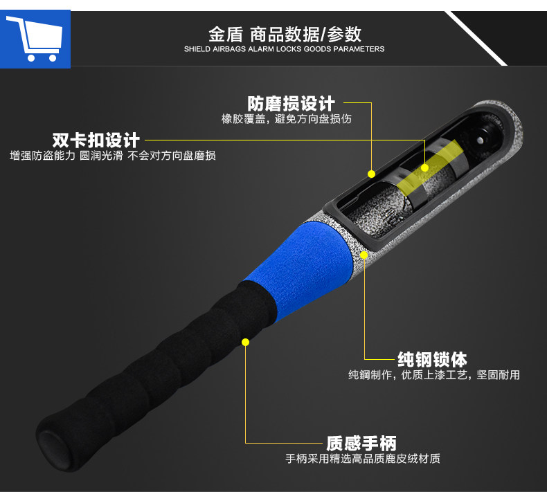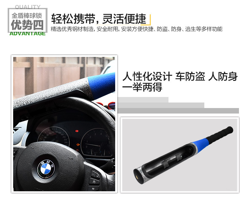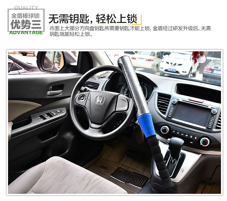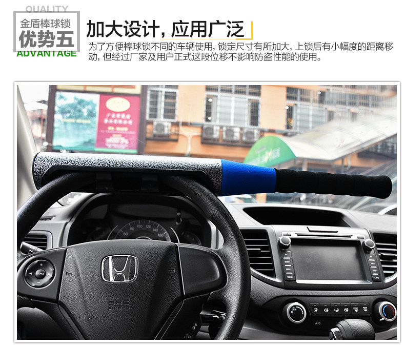 汽车方向盘锁棒球锁通用大号加厚双卡防盗锁安全车头锁具
