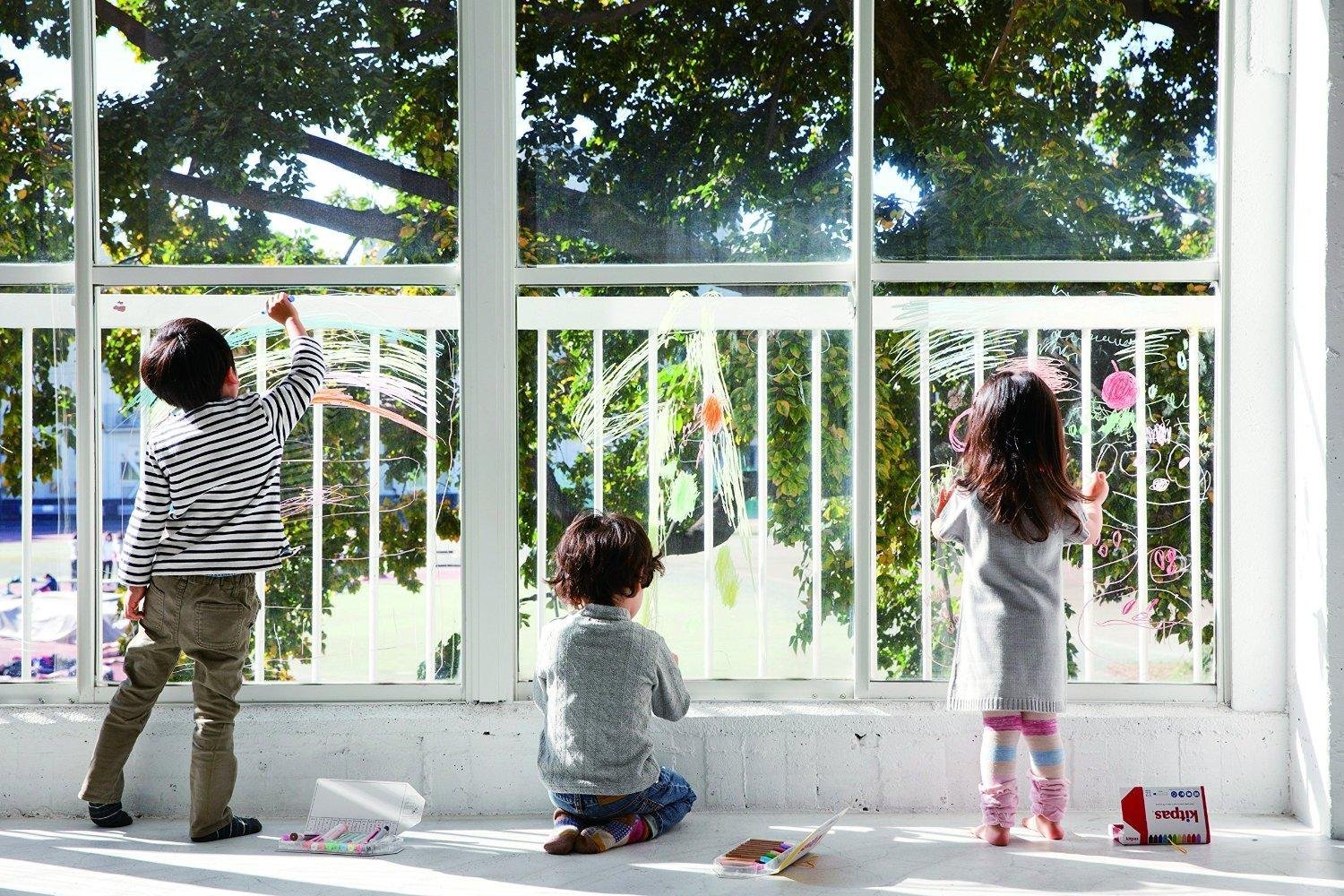 ・キットパスはガラスやホワイトボードのような浸透しない素材に載りよく描けて、濡れた布で簡単に消去できるクレヨン
