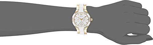 -. Feature : Stainless steel gold-tone and white multi-function watch with day, date, int'l time and genuine crystals / Durable mineral crystal protects watch from scratches / Quartz movement / Case diameter: 36.0mm / Water resistant to 99 feet