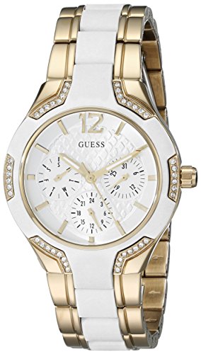 -. Title : GUESS Women's U0556L2 Stainless Steel Gold-Tone & White Multi-Function Watch
