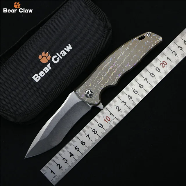 곰 발톱 마사코 남성 KM-610 스바루 접는 칼 D2 블레이드 티타늄 핸들 야외 캠핑 사냥 포켓 과일 나이프 EDC 도구