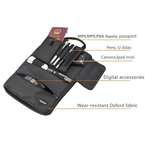 - Feature : Suit for digital products:14" laptop, ipad mini, iphone, Power supply, hard drive, flash disk, u disks, power bank, data line, headset, Portable wifi device, MP4, MP5, camera. Also ideal for office supplies: Pens, pencils, notebook, business card, passport and so on / Features with high-Qulity Oxford fabric, wear-resistant& sturdy, free and portable whilt on the go / Light& Foldable, 3 Comfortable handle, easy to store& carry. Nice zipper keep items safe. / Multi-purpose storage bag, can be a laptop bag or just a common digital bag .allows folding, just put it in suitcase when traveling or on a business trip / Expand size:380mm*245mm. Fold size:180mm*240mm*30mm