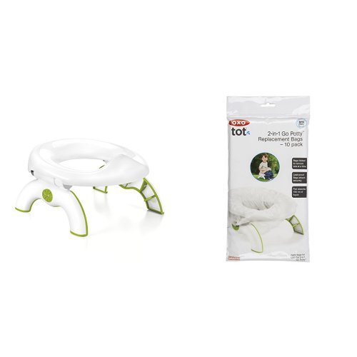 OXO TOT 2-IN-1 GO POTTY FOR TRAVEL IN GREEN AND GO POTTY REFILL BAGS, 10 COUNT
