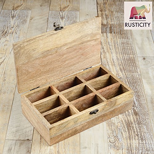 Studio : Rusticity Publisher : Rusticity Binding : Kitchen Product Description It is never too early nor too late to renovate your kitchen and dining area with a few rustic additions to complement your wooden spatulas and sun-kissed cabinets. With its rich light brown colour, intricate hand-carved designs and a wooden tree trunk texture, Rusticity's tea and spices organizer box skilfully handcrafted by rural artisans from remote villages in India has a lot to offer in terms of the desired rustic touch to your dining table. A perfect accessory to display along with your ceramic dinnerware or the genteel Opalware for a beautiful evening with your guests.