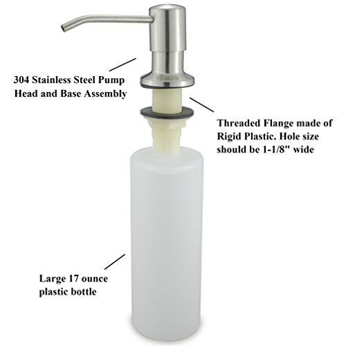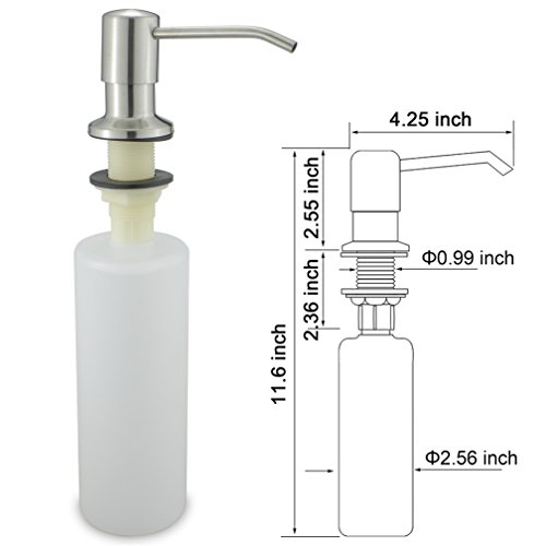 Singoracer Well Built and Sturdy Modern Stainless Steel Brushed Nickel Deck Mounted Kitchen Sink Countertop Hand Liquid Dish Soap Dispenser, Large Capacity 17 OZ Bottle Sink Soap Dispenser