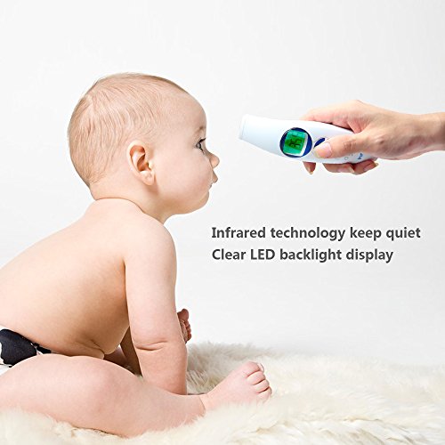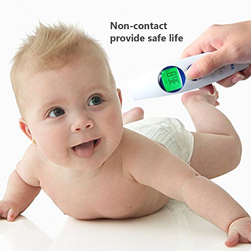 - Feature : Dual Mode - Specifically designed for both Body(forehead & ear) and Objects temperatures.Suitable for adults and children / Non-Contact - Infrared technology take precise temperature readings of babies or children without making them uncomfortable / Accurate & Fast - Passed numerous rigorous clinical tests. Proven to be precise and accurate when used in accordance to instructions.Take the guesswork out of determining your child's temperature in only 1 second ! / Memory Storage - Store up to 30 previous readings in device memory at off status. Display reading in Fahrenheit and Celsius / Intelligent Temperature Analysis - Visual (red backlight) and auditory (warning alarm) when temperature exceeds 99.5 °F (37.5°C)