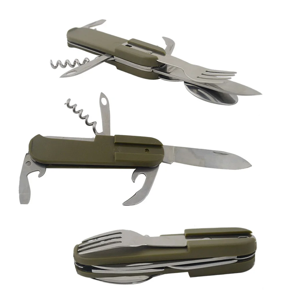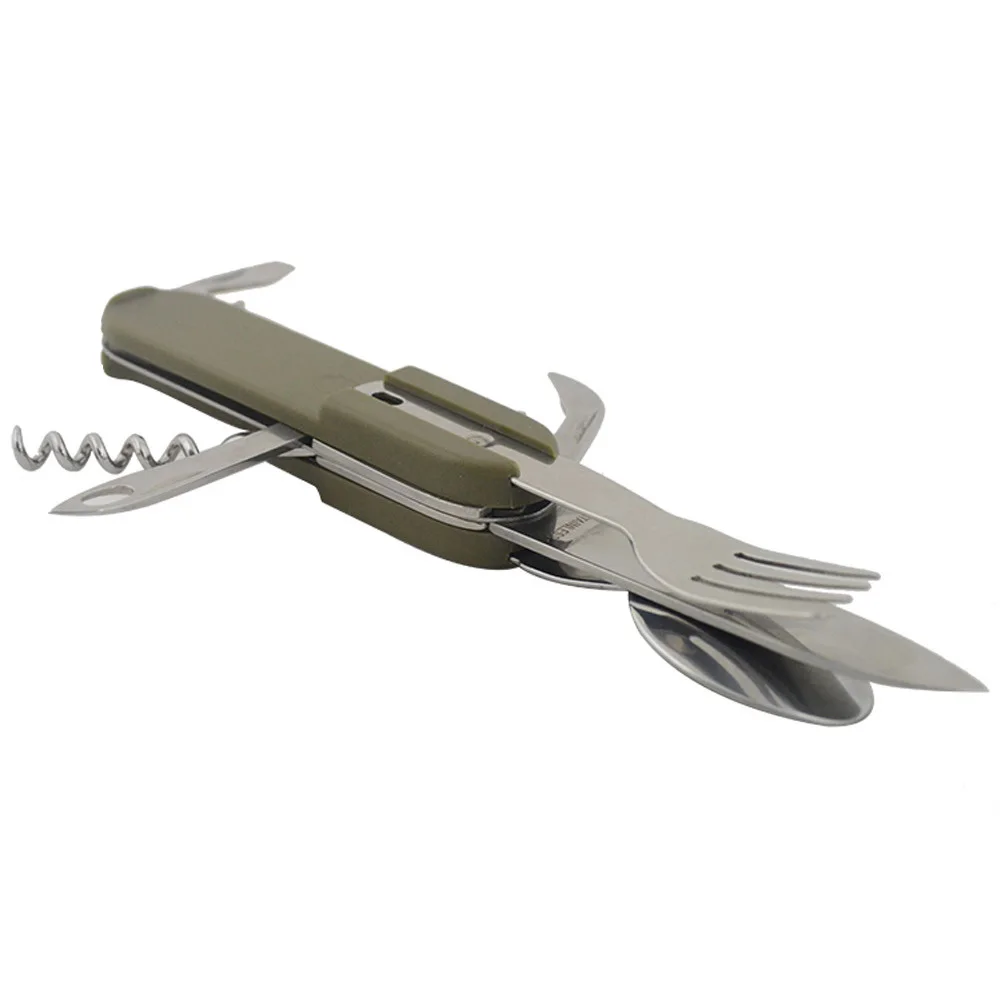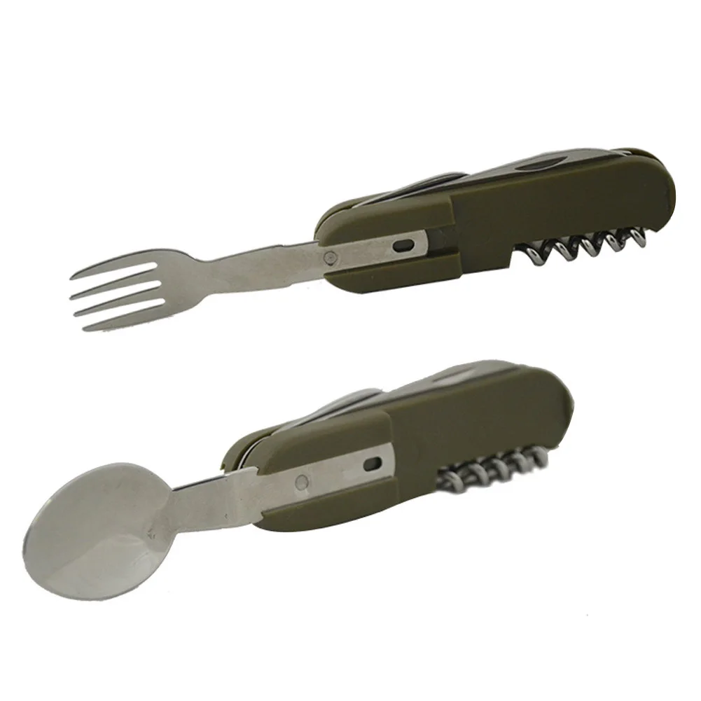 5 1 나이프 포크 Sppon 오프너 캠핑 다기능 휴대용 스테인리스 식기 야외 캠핑 사냥 피크닉
