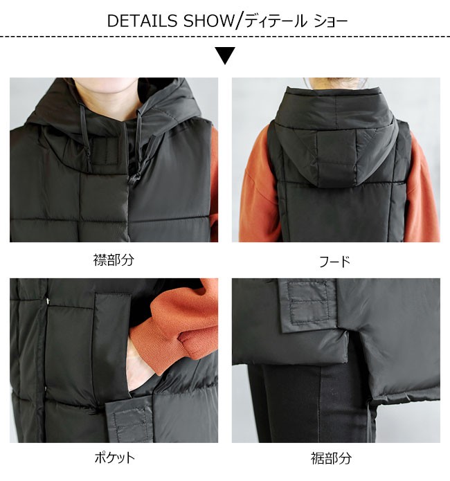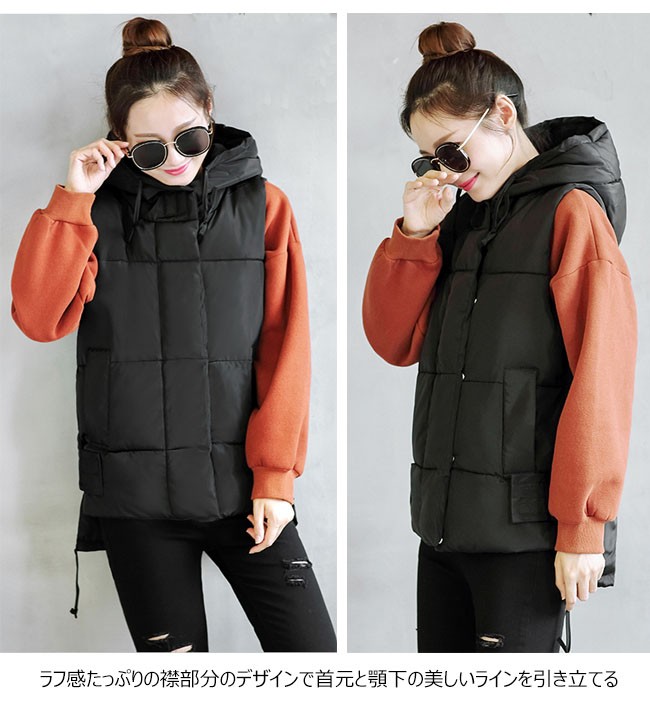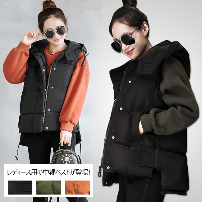 | 商品名 | レディース 中綿ベスト 女性用 中綿 ベスト フード付き アウター 秋冬物 トップス ポケット付き 着まわし 不規則裾 |