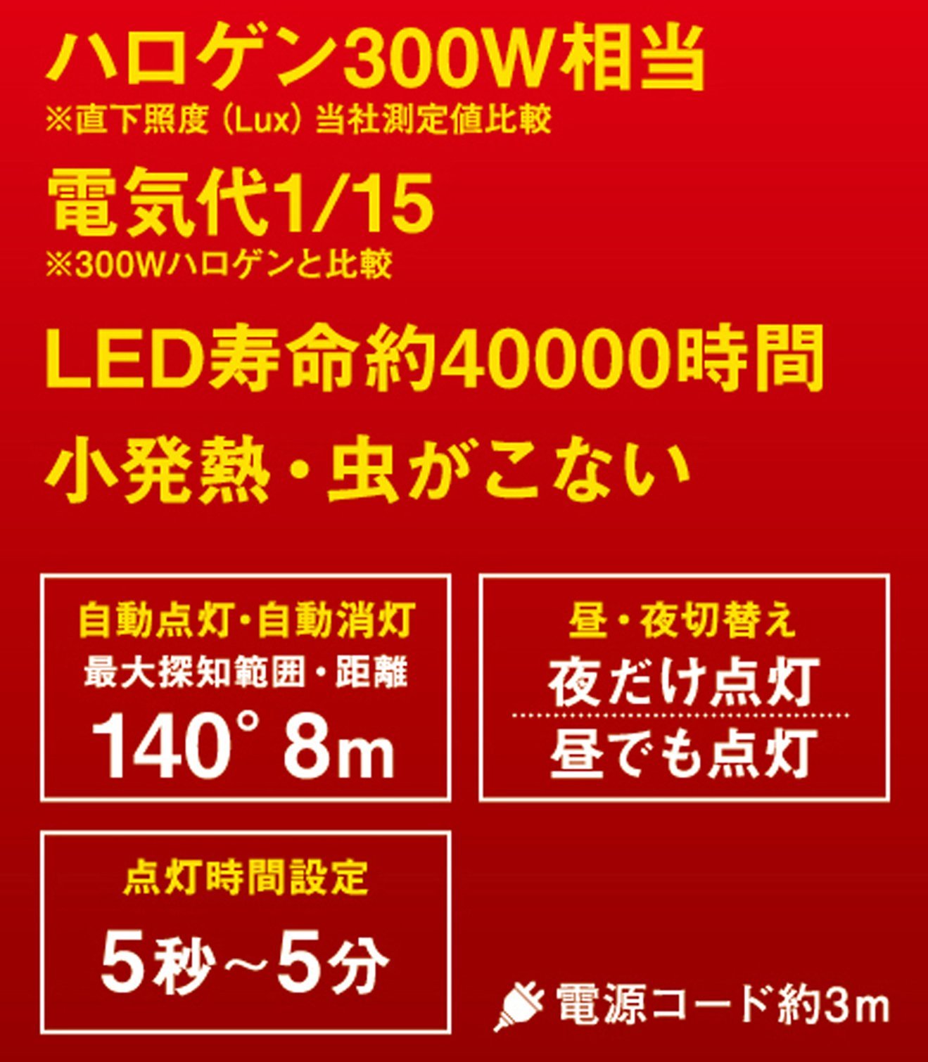 ● Electricity charge about 1/15 ※ compared with 300W halogen