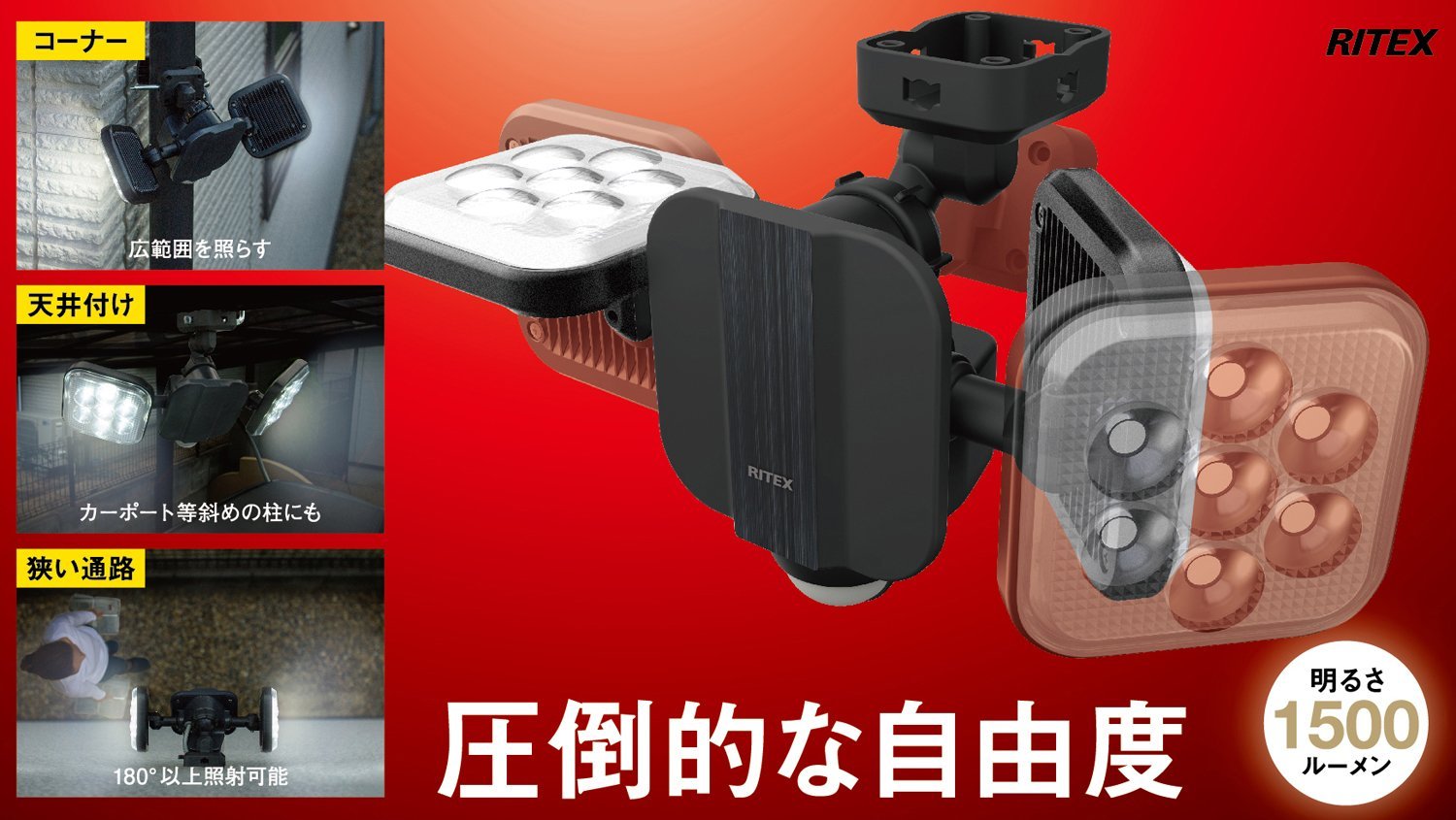 (Corner) Shining a wide area / (Entrance - Garage) Front and back lighting up both / / (narrow aisle) Irradiate over 180 °