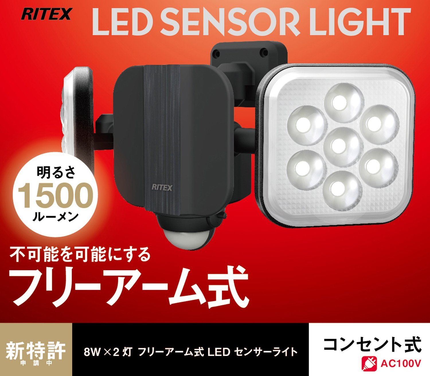 Free Arm Type Sensor Light with New Structure Ideal for Irradiation Direction and Mounting