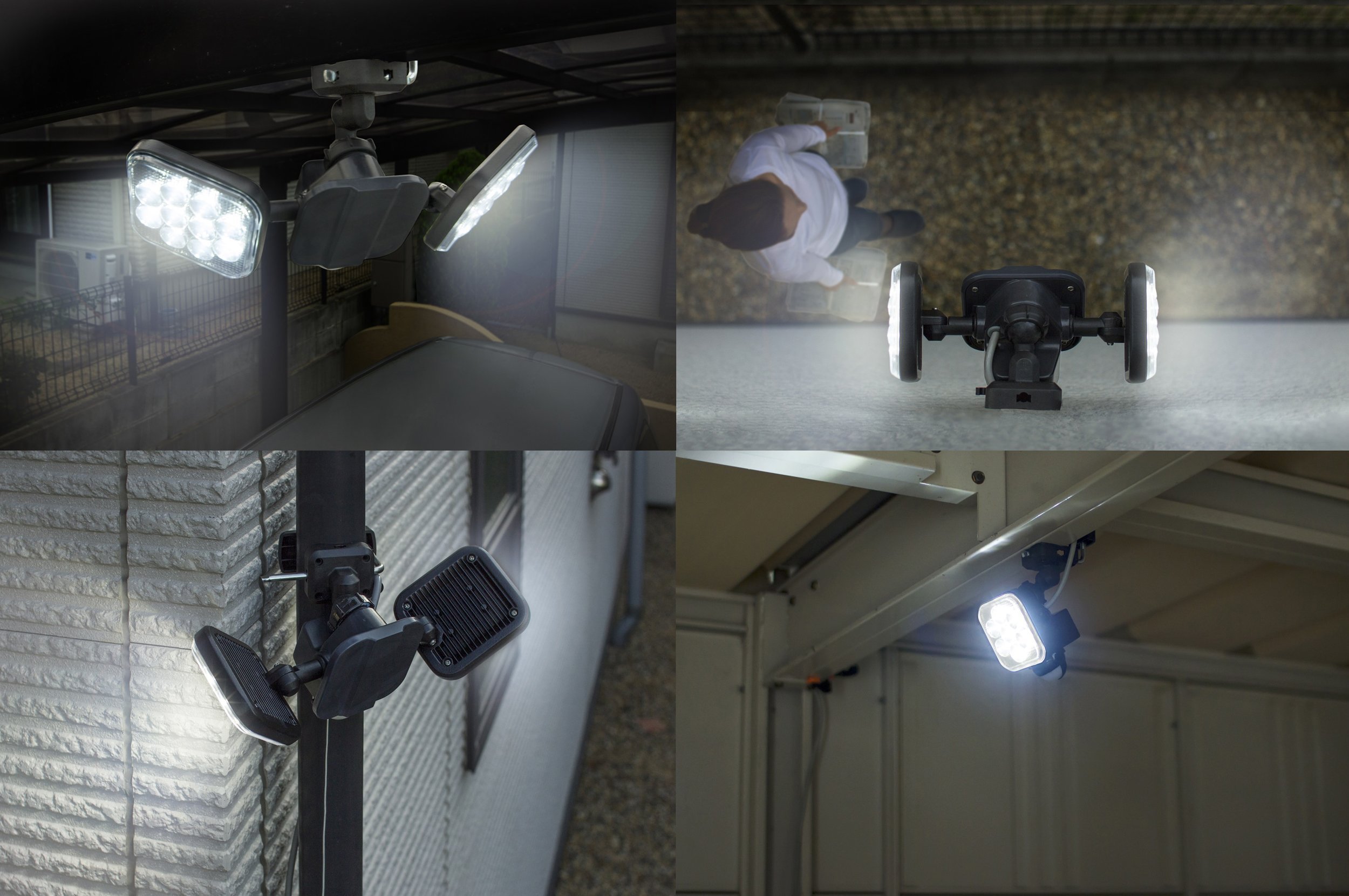I installed a hole in the concrete wall so that the shelves behind the garage became easier to see. I think that it is good to be able to finely set the sensing range and the angle of two lights. It is up to each person how much brightness you want. Personally it was enough.