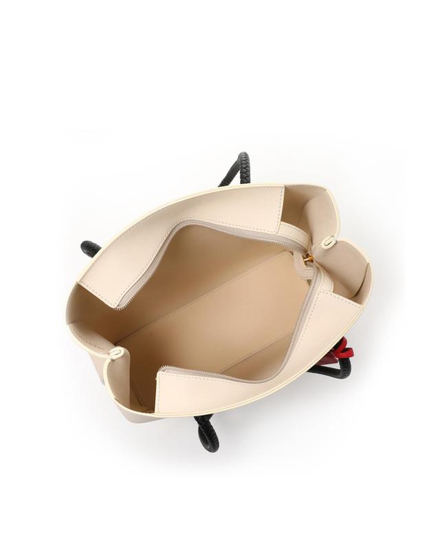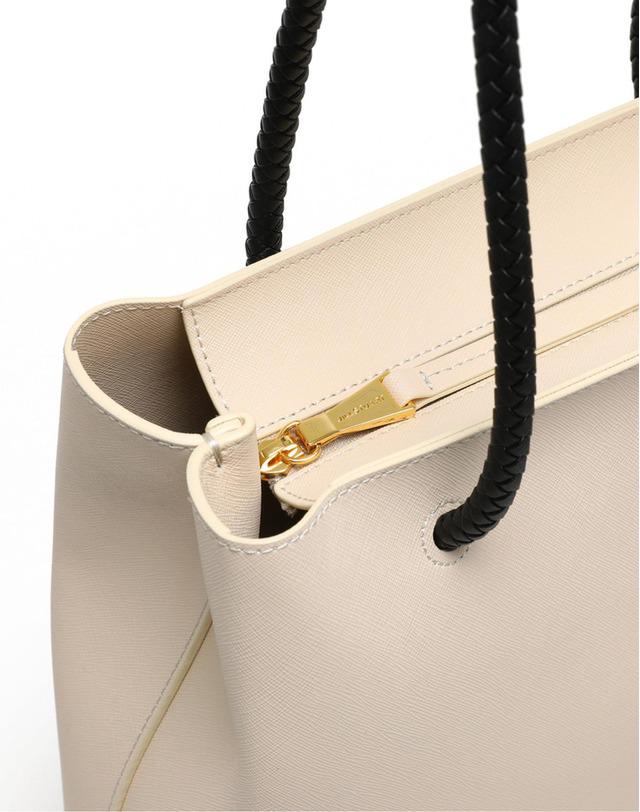 솔리드 컬러 바탕에 로고를 배색하고 위빙 장식의 핸들과 참 장식으로 포인트를 주어 멋스러움이 느껴지는 쇼퍼백입니다.