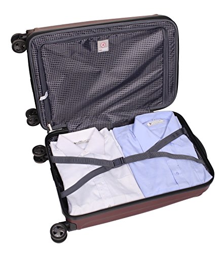 -. Feature : Durable abs construction / 4 spinner wheels for easy mobility / 2 inch expansion / Fully lined interior with split packing, tie-down straps and a compartment cover / 9.5x14x21