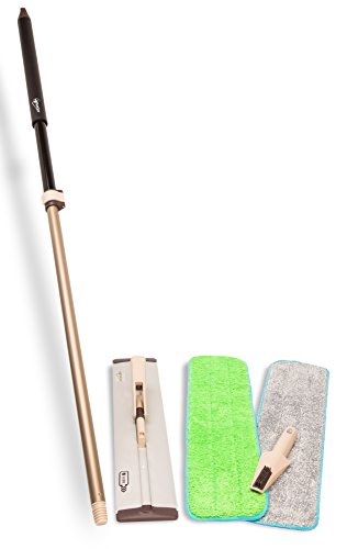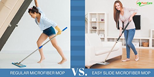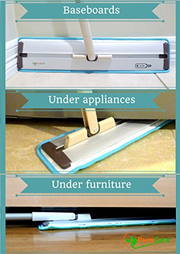 19.5" Pure Care Microfiber Mop with Telescopic Handle for Hardwood, Laminate, Tile floors, 2 Microfiber Pads for dusting or wet mopping, Multi-functional Scrapper