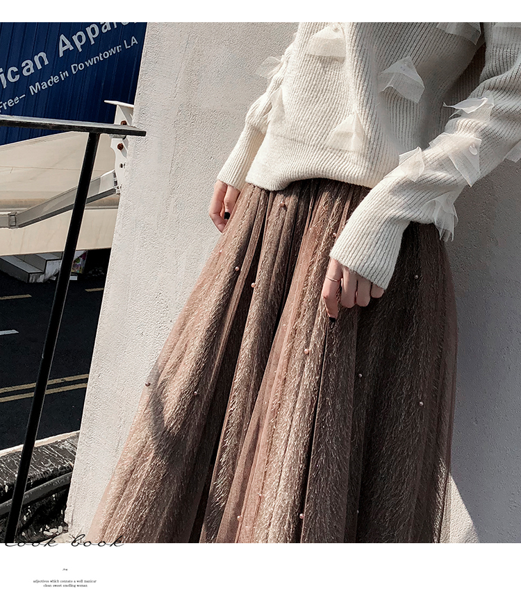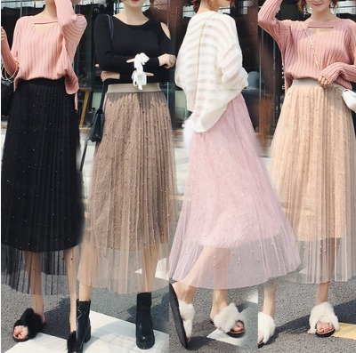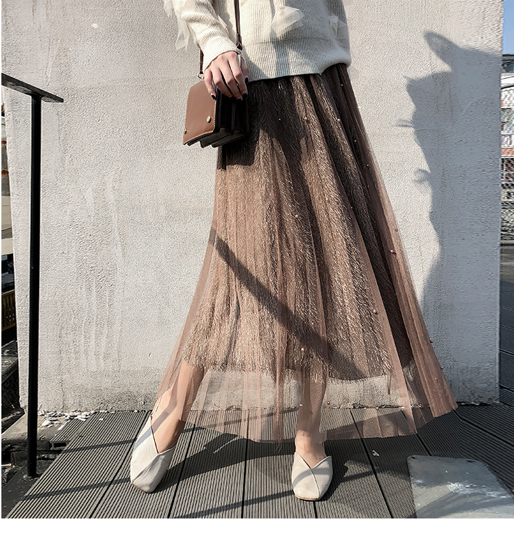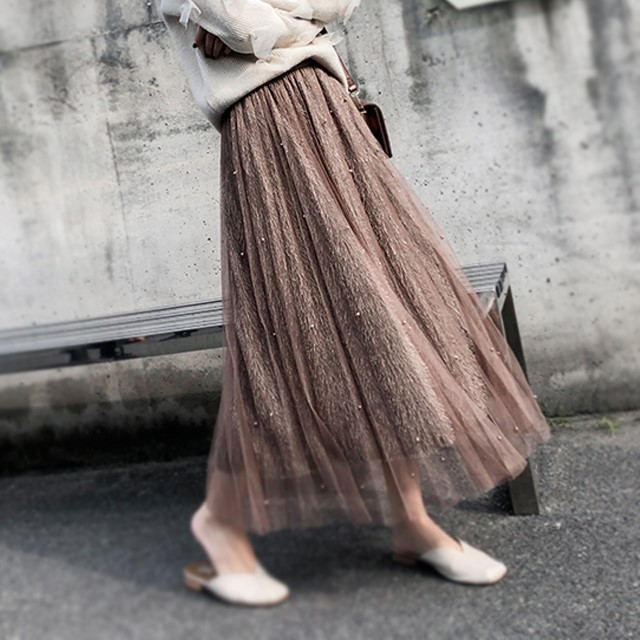 女性らしいAラインのふんわりシルエットがきれいなシフォンスカート。