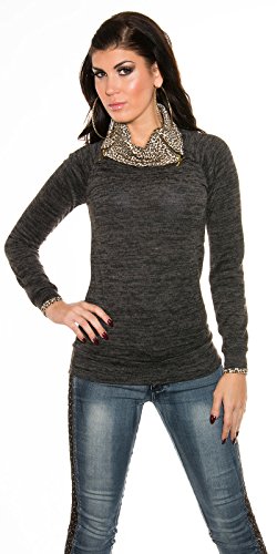 -. Title : KouCla Damen Pullover mit Stehkragen im Leo Design und Reißverschlüssen