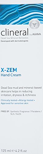 ReleaseDate : 2016-08-31 Studio : AHAVA Publisher : AHAVA Binding : Health and Beauty Product Description Introducing Clineral X-Zema Hand cream by AHAVA Teva, formulated to combat the unpleasantness and often unsightly appearance of eczema prone skin. Developed with dermatologists to ease irritation, dryness and itchiness, this product is an invaluable aid in the recovery of your problem skin. Made from the finest minerals of the Dead Sea, you can rest assured you won't encounter the harsh reactions found in so many other skincare products.Approved for sensitive skin. Allergy tested. Free of Steroid, fragrances and parabens. 0