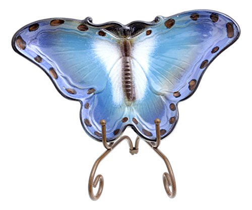 DCC Crafts 11.75" x 6" Ceramic Butterfly Plate with Display Stand (Blue)