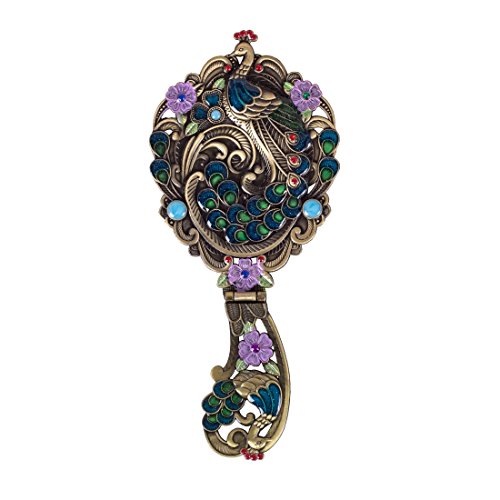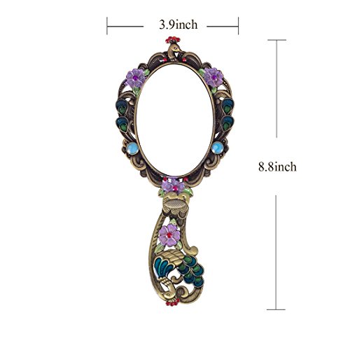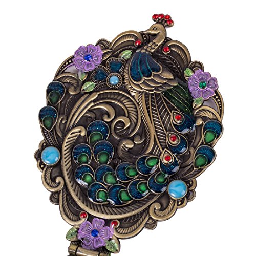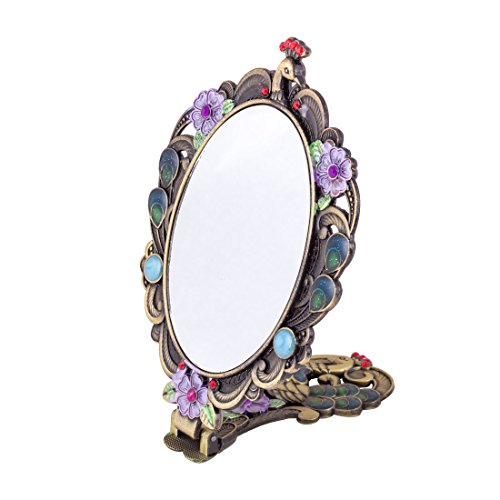 MOIOM Vintage Style Foldable Oval Peacock Pattern Makeup Hand/Table Mirror (Bronze)